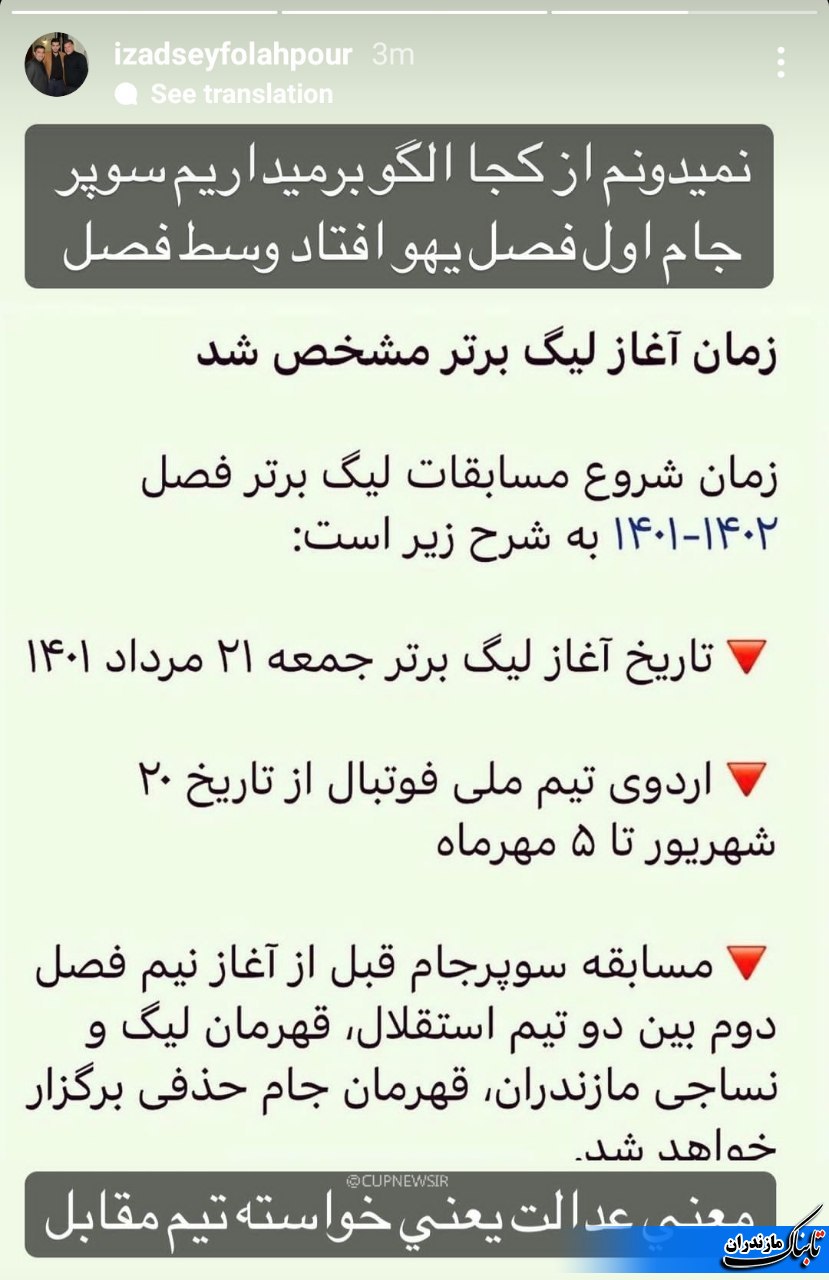 گفتنی است مدیرعامل نساجی نسبت به تاریخ اعلام شده برای سوپرجام واکنش نشان داد.