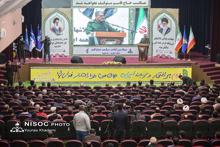 فرمانده سپاه ولی‌عصر (عج) خوزستان در اجتماع بزرگ کارکنان صنعت نفت جنوب که به مناسبت سالگرد شهادت سپهبد شهید حاج قاسم سلیمانی در تالار امام رضا(ع) شهرک نفت برگزار شد گفت: قلبِ شهید سلیمانی برای عزت و سربلندی مردم ایران می تپید و امروز نیز همه ما صف در صف برای عزت جمهوری اسلامی تلاش خواهیم کرد.