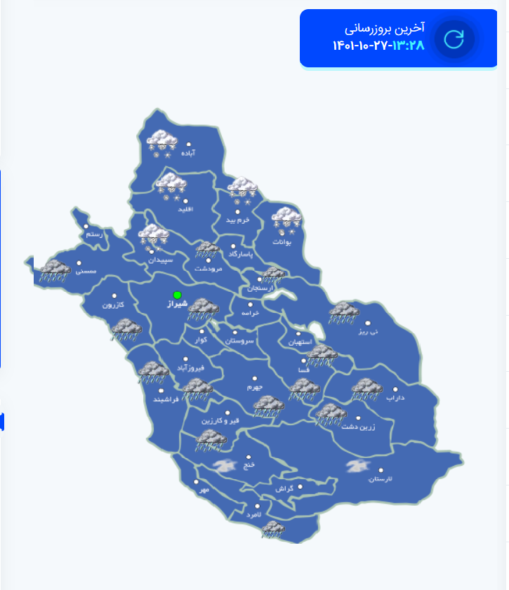 نقشه هواشناسی عصر 27 دی فارس