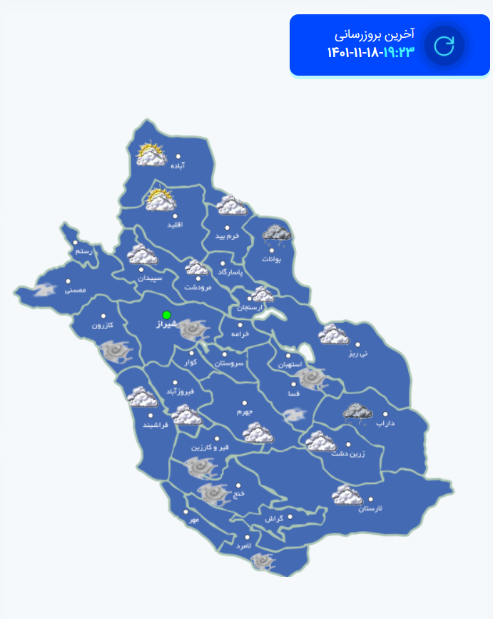 نقشه هواشناسی بعداز ظهر 12 بهمن فارس