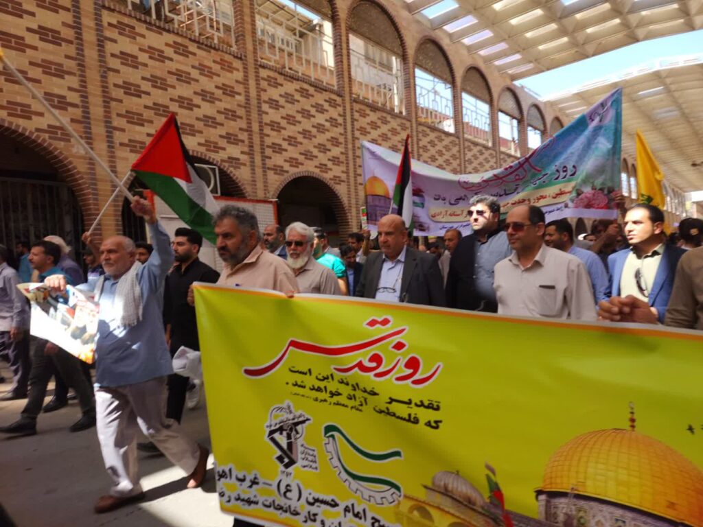 گامها آرام، اما استوار برداشته میشد و نجوای یکصدای «اتحدوا اتحدوا»، زیر پرچم سه رنگ ایران و بیرقهای زرد حزبالله، تماشایی بود. در آخرین جمعه ماه مبارک رمضان، همه آمده بودند؛ پدری دست در دست فرزند چند سالهاش به سمت وعدهگاه حرکت میکرد. مادرانی با کودکانی در آغوش، همقدم با خانواده، به سیل جمعیت پیوستند و در هوای بهاری اهواز، در میانه جنبش پرچمها و مشتهای گره کرده، نمایی از اتحاد علیه رژیم غاصب را به تصویر کشیدند.