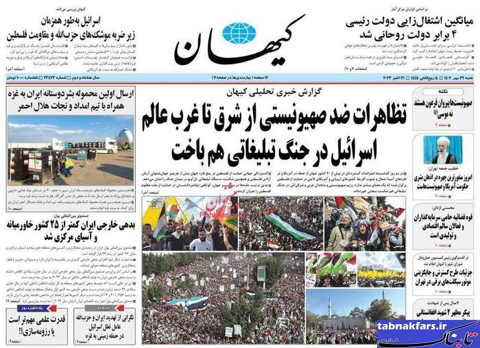 صفحه نخست روزنامه های امروز 29 مهر 1402 فارس