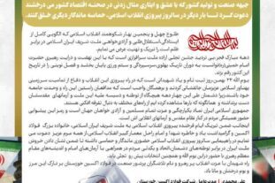 اینجانب ضمن تبریک ایام فرخنده پیروزی انقلاب اسلامی به ملت شریف ایران اسلامی، خانواده بزرگ فولاد اکسین و گرامیداشت یاد و خاطره شهدا و امام راحل معمار کبیر انقلاب اسلامی،از همه مرم عزیز دعوت می نمایم در راهپیمایی سالروز پیروزی انقلاب اسلامی حضوری ماندگار و حماسی داشته تا ضمن نشان دادن خروش ملت ایران در برابر توطئههای دشمنان،اتحاد و یکدلی مردم در همراهی با آرمانهای امام و اندیشههای مقام معظم رهبری با حضور دراین یوم الله و همچنین انتخابات پیش رو تجلی یابد.