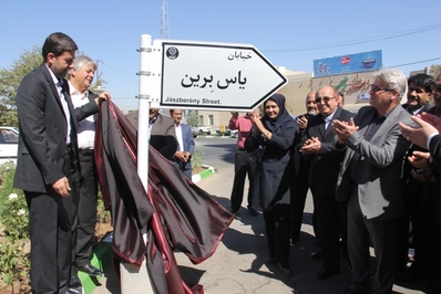 طی مراسمی و با حضور شهرداران و اعضای شورای شهر نام خیابان یاس یزد به "یاس بِرین" تغییر کرد