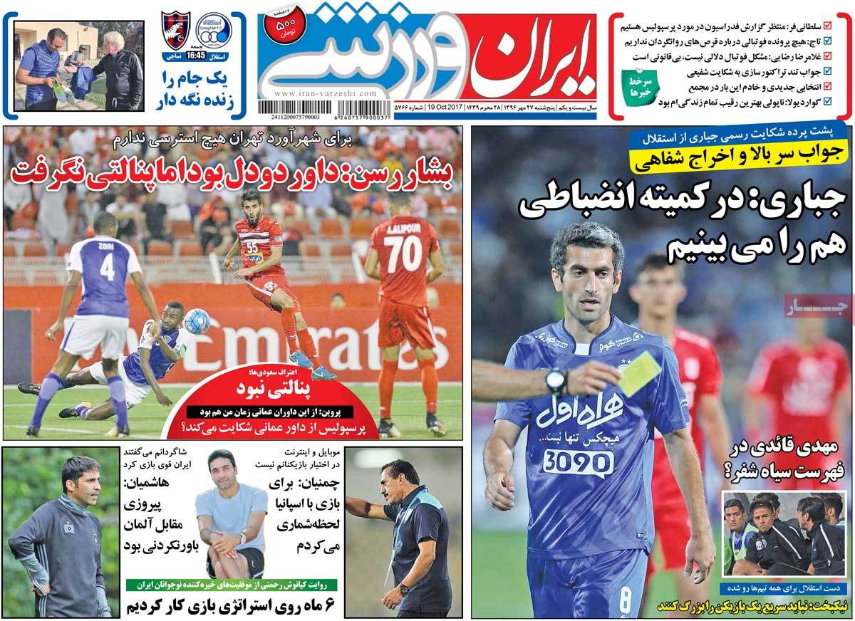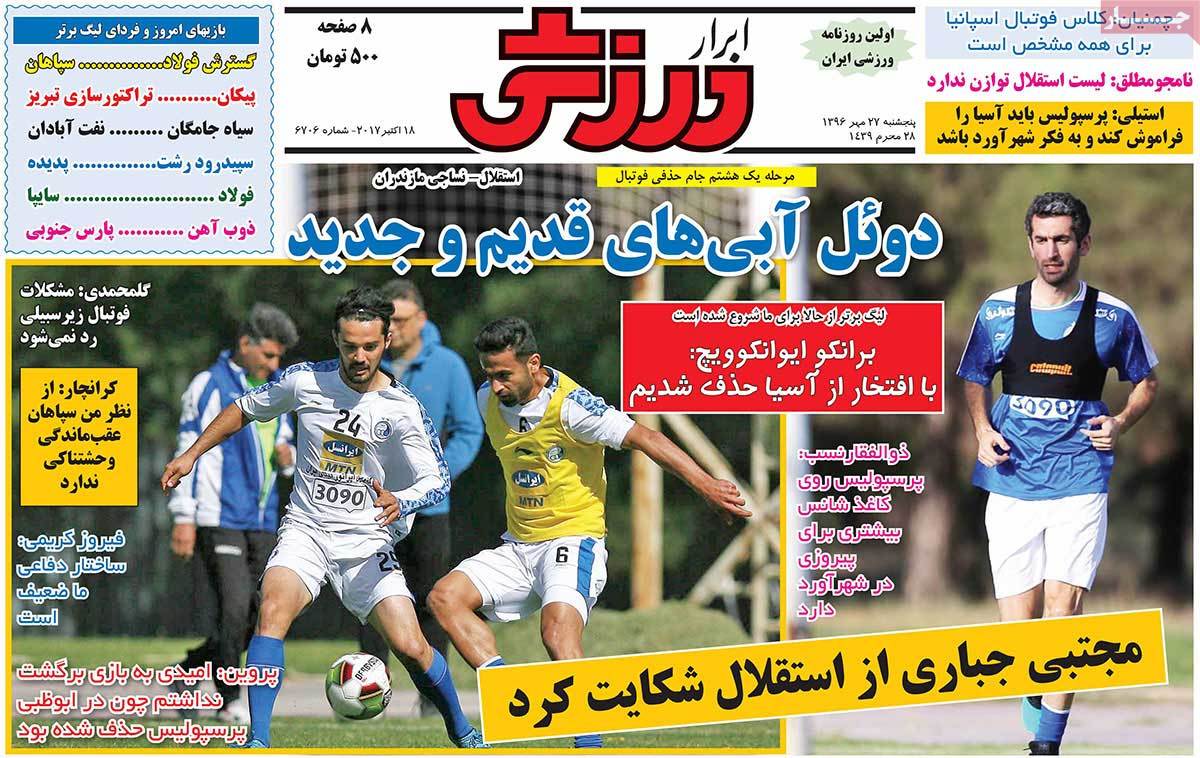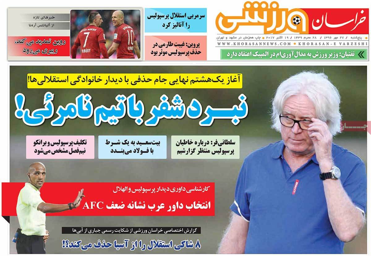 روزنامههای ورزشی پنجشنبه 27 مهر 96