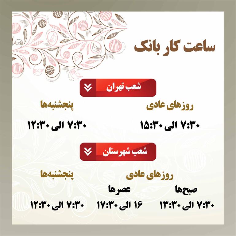 لینک ساعات کاری بانک قرض الحسنه رسالت نیز مربوط به روزهای عادی است و اگر شخصی در طی ماه مبارک رمضان به این سایت مراجعه کند خبری از ساعات کاری این بانک در این ایام موجود نیست!