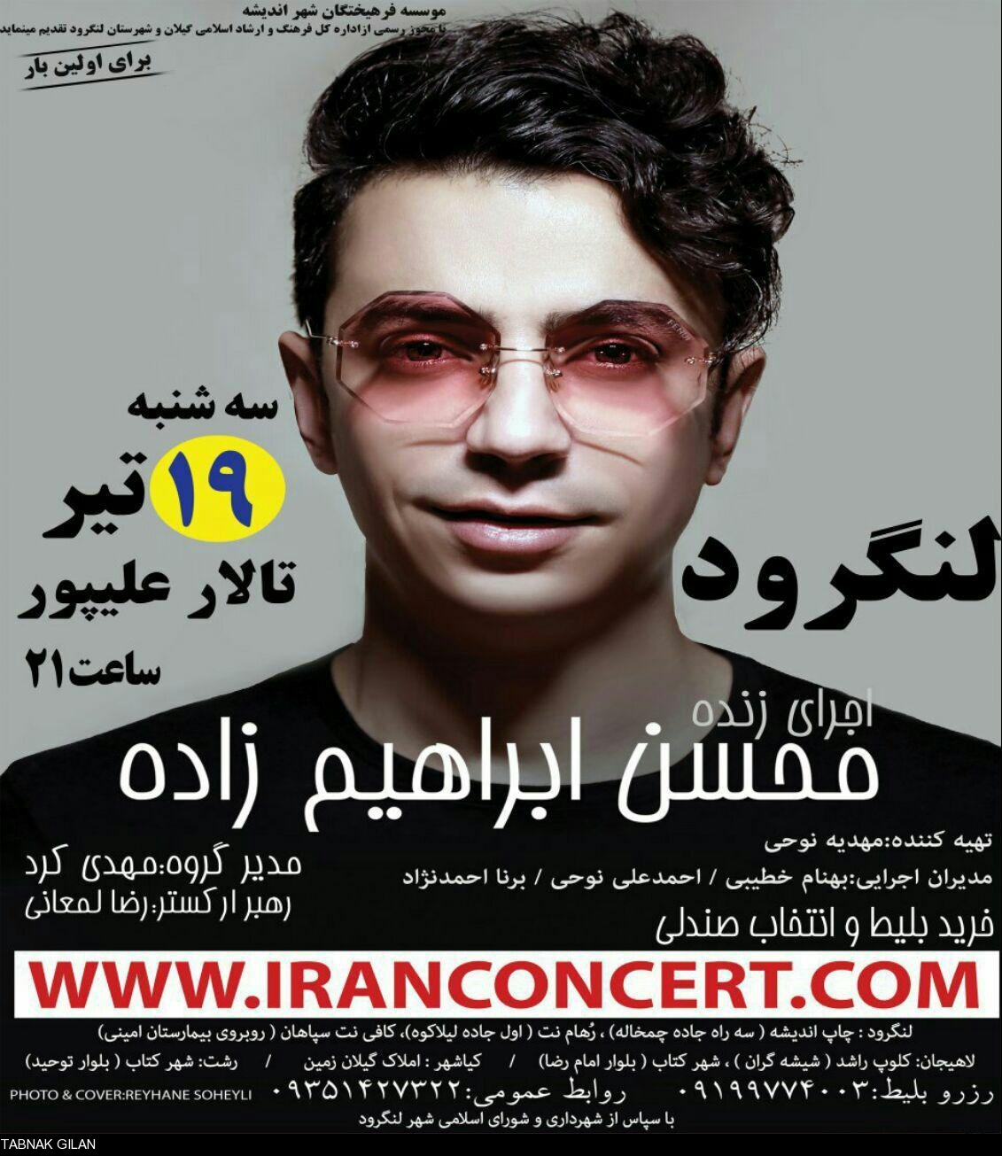 تابناک / #کنسرت #محسن_ابراهیم_زاده در #لنگرود، سه شنبه ۱۹ تيرماه، ساعت ۹ شب در تالار علی پور (اول جاده ليلاکوه، ورودی جاده سالکويه).