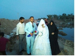 یک زوج جوان در روستای سبهانیه از توابع شهرستان سوسنگرد، مراسم آغاز زندگی مشترک خود را روی سیلاب برخاسته از طغیان رود کرخه و پشت سیل‌بندها برگزار کردند.