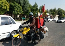از پرچمهایی که به موتورش بسته بود میشد حدس زد راهی کربلاست...