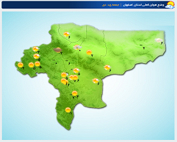 ‌ پیش‌بینی پنج ‌روزه هوای کلانشهر اصفهان برای ‌جمعه: نیمه تا تمام ابری، گاهی وزش باد به نسبت شدید و بارش باران و برف و احتمال رعدوبرق برای ‌شنبه: نیمه ابری تا تمام ابری و مه‌صبحگاهی گاهی وزش باد  شدید تا شدید و گاهی بارش برف و باران برای ‌یک شنبه: صاف تا کمی ابری و مه آلود گاهی افزایش ابر  و وزش باد و برای دو شنبه: صاف تا کمی ابری و مه آلود گاهی افزایش ابر و افزایش آلاینده های جوی خواهد بود.