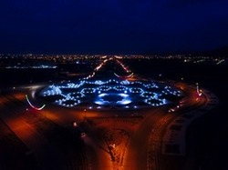 همچنین در فضای ایجاد شده با ترکیبی از نمای باغ سنگی، نور‌های رنگی در داخل نما‌ها انعکاس داده شده تا زیبایی محوطه نمایان شود.